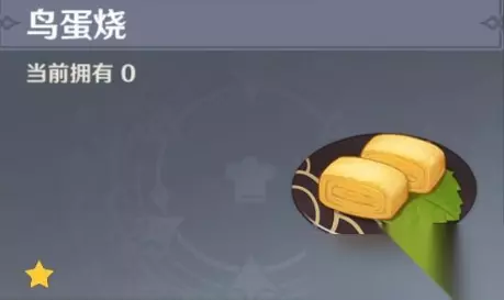 【食谱配方】:鸟蛋+糖 【食谱获取】:在稻妻城冒险家协会对面找那人对话购买,价格是1000摩拉 【制作方法】:煎制而成的蛋料理。将搅拌均匀的蛋液先行调味,倒入锅中小火慢煎,卷至一边定型,再次倒入蛋液继续·…重复至一定厚度,便可摆盘作为成品。是稻妻地区平凡而又亲切的美味。