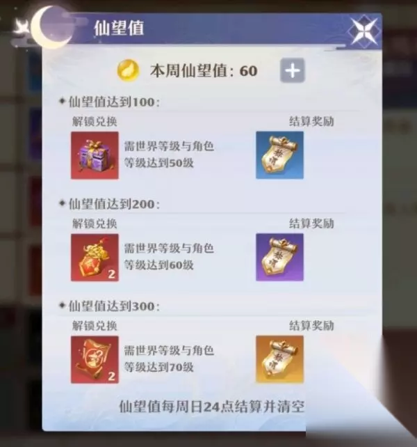 梦幻新诛仙中仙望值是游戏内新增加的玩法,当玩家获得100、200、300仙望值的时候,可以解锁更多的灵玉商店新商品,届时玩家能在该商店里购买全新的道具了。