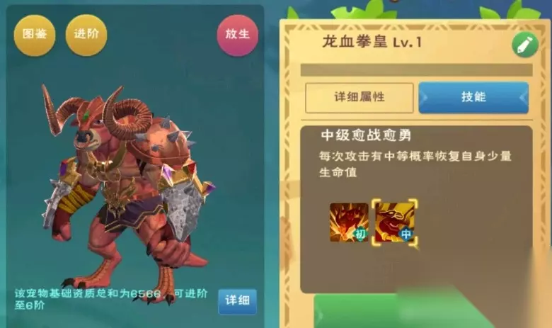 创造与魔法龙血拳皇资质怎么样?关于龙血拳皇的资质如何,想必很多玩家都想知道吧,毕竟一个宠物是否值得培养,主要看的还是上限够不够高。下面就让小编给大家带来《创造与魔法》龙血拳皇资质介绍,感兴趣的玩家一起来看看吧。