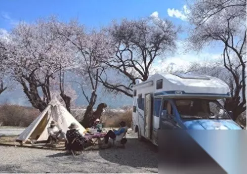 而此时索松村的酒店 已经涨至几千块一晚且一房难求 你坐着移动的酒店扎营在桃花树下 对着南迦巴瓦 享受着特色暖汤晚宴 房车出游,一下子就变成了最正确的选择!