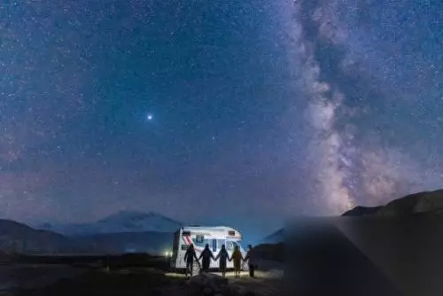 而夜晚扎营杏花村 夜幕璀璨的星辰下 是独属于房车的山野浪漫