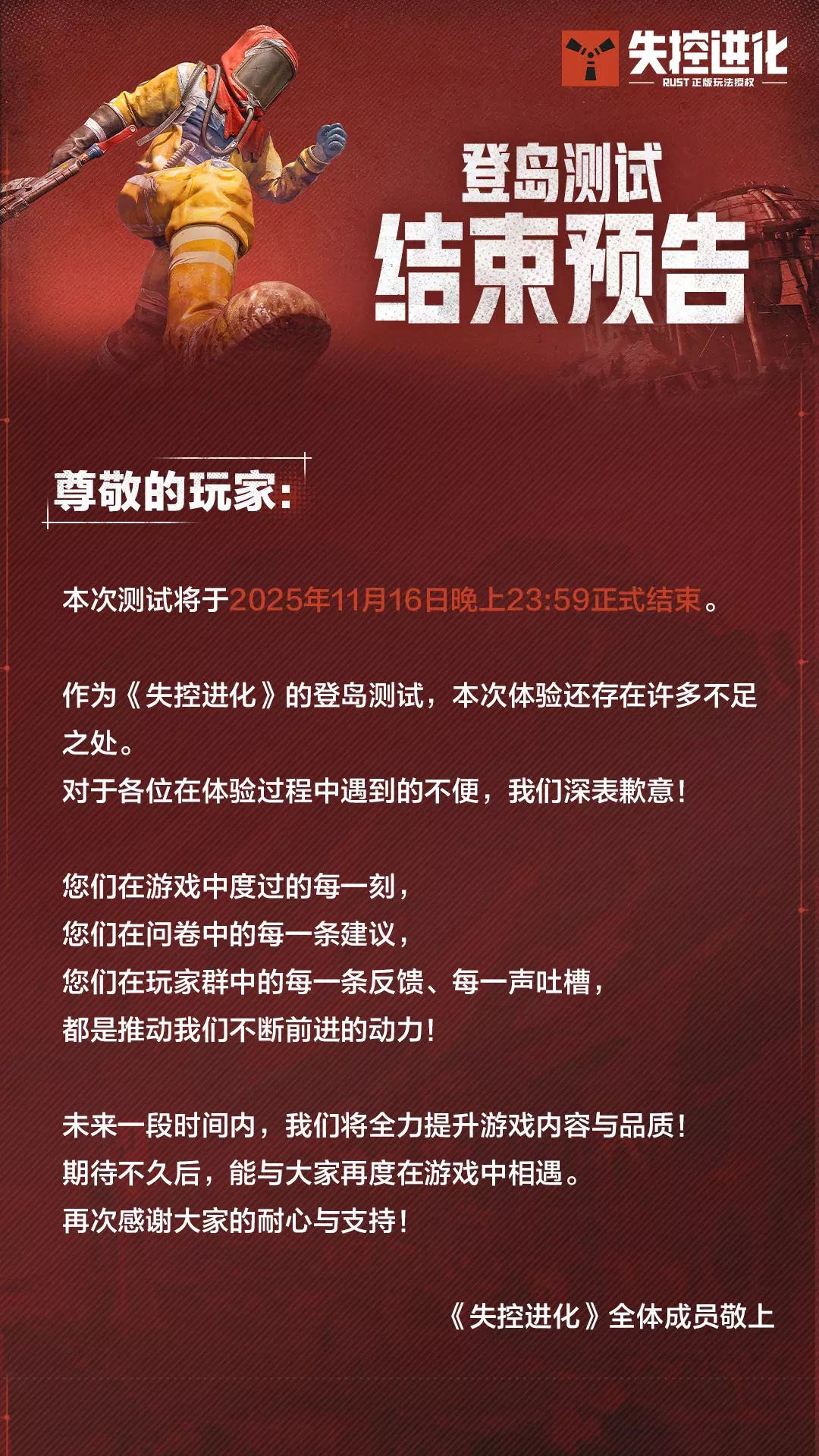 本次测试将于2025年11月16日晚23:59正式结束;