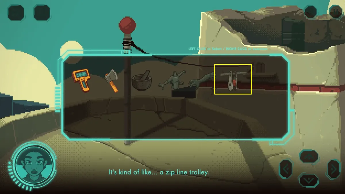 从物品栏中选择机器人,让他帮你取回绳子。