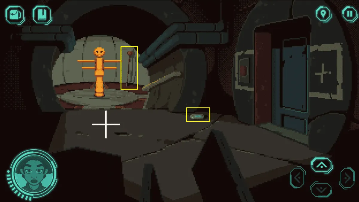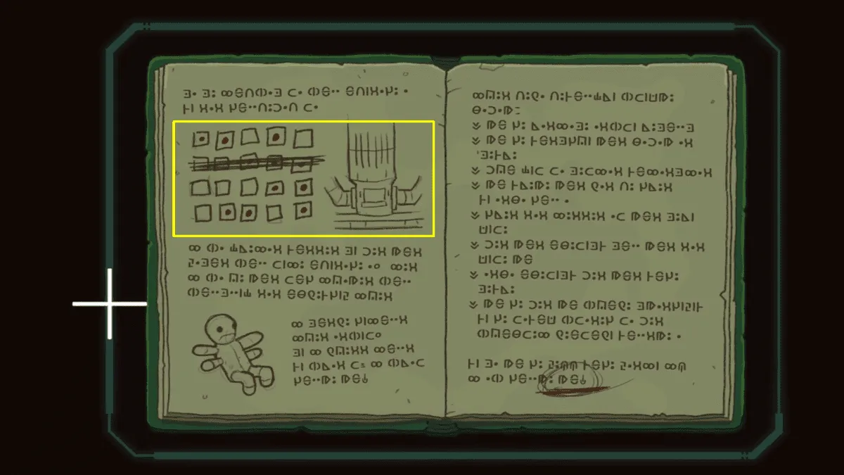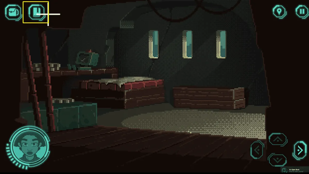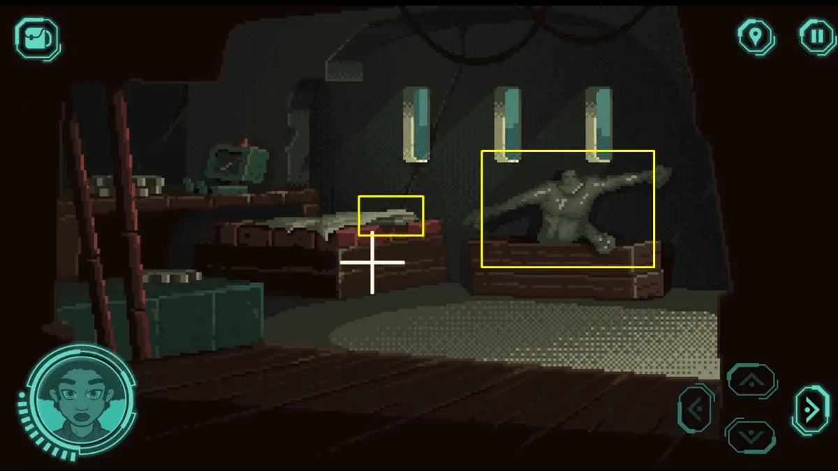 在这里,我们可以找到一尊可能正在修复的雕像残骸,以及床上的一本绿色日志。