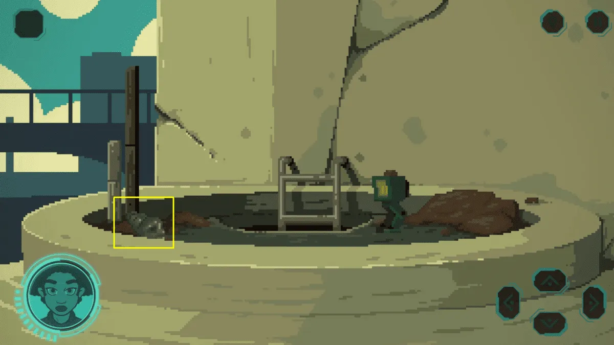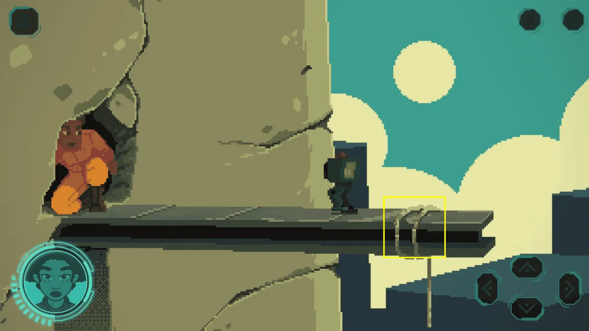 现在你有了机器人伙伴,回到有绳子在边缘的开口处。