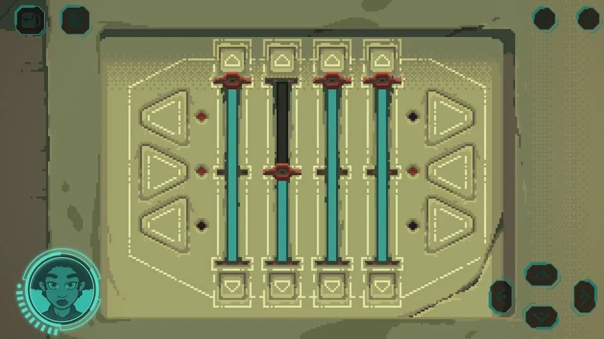 第二项操作是按下圆圈按钮,即可放下一座桥,让你打开通往底层的圆形门(按下空白方框上的圆圈按钮)。