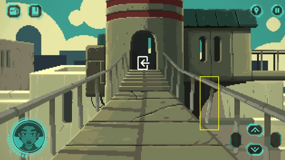 此外,我们还可以左右移动,看到一条被毒水流阻挡的道路(有四个不同颜色的按钮),以及一个俯瞰全城的大型观景台,以及一扇被封死的大门。
