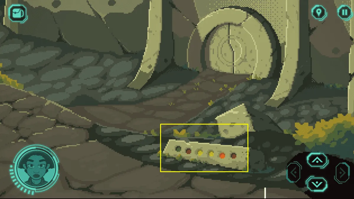 别不信,这根树枝会派上用场。把它带到有圆形门的地方,用它掸掉门下方带有彩色标记的方块上的灰尘。