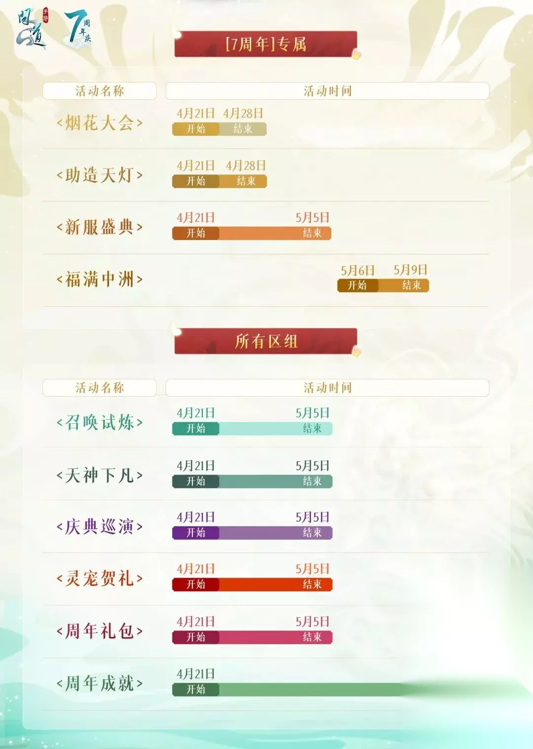 问道手游七周年礼包码最新 mWJl2022 mWJl2023 mWJl88888 mWJl66666 mWJl77777 DZFZH666 DZFZH888 DZFZH999 VIP666 VIP888 VIP999 问道手游七周年兑换码礼包码 问道手游官服礼包兑换码放送:七周年快乐、问道七周年、我爱问道、应龙777、青鸾777!这些礼包码均可全服使用,2023年9月1日前有效! *注意:一个区同一账号下只能有一个角色领取哦~ 先来一张7周年活动总览,所有活动安排一张图尽收眼底: 再来一张重磅活动汇总,能够获得神兽、变异、7周年纪念宠碎片的活动都在这儿啦: