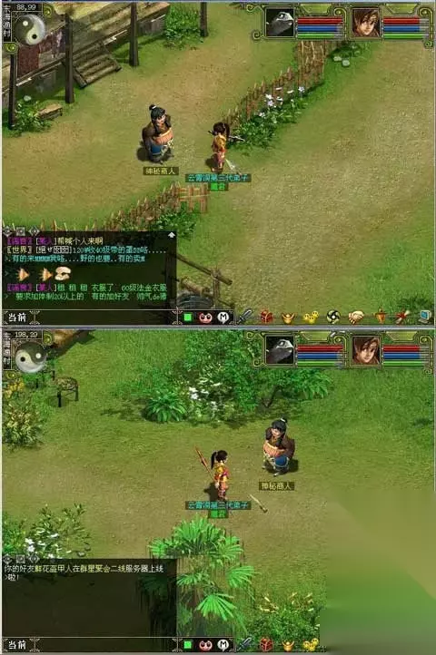 问道神秘商人位置详细介绍 赶快来围观吧,看到很多朋友都在找神秘商人,有的人只告诉坐标不是很具体,下面小编来看看小编带来的问道神秘商人位置详细介绍,绝对很详细。 一:天镛城:(2处) 1:160.258(道观门口) 2、176.63(蒙面所在房子的前面靠近河边处) 二、东海渔村(2处) 1、25.99(靠近5龙山脚的房子的前院里) 2、192.29(这个比较离谱,偏远的地方) 三、揽仙镇(2处) 1、106.64(这个位置自己看,比较常出现) 2、153.246(乡下菜地) 图一:天镛城