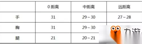 SCAR系列的护甲修正为20% (护甲修正:即有AC后伤害削弱部分占原伤害的百分比,也就是说护甲修正越小,子弹穿透AC所损耗的威力越小,而AC对手和腿部无防护作用) 小结:SCAR的伤害其实并不低,这个伤害同雷神一致,比普通M4A1的伤害还要高一些。 二、距离对伤害的衰减 胸部伤害x4即为头部伤害,打中护甲的伤害须在此基础上另外x0.8 。