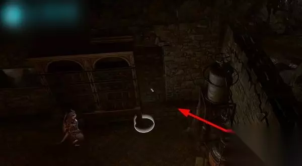 3、到达地下室后,找到墙壁上的控制杆,按下开关,右边的柜子会移动开,出现另一个通道