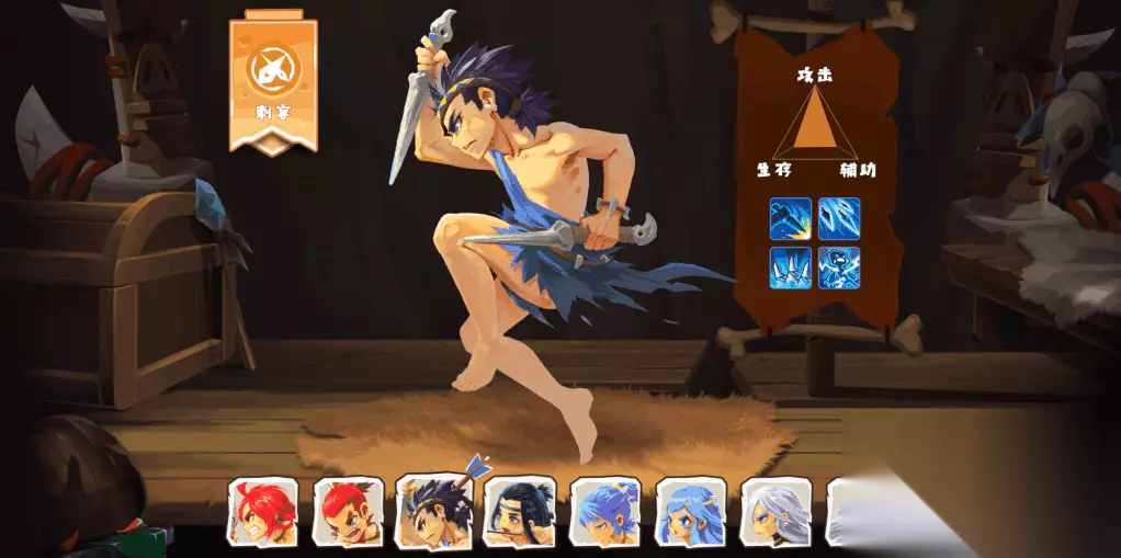 不得不说勇者类男♂的角色立绘特别帅,作为原始人 肌肉丰满,身强力壮,有一种男神范! 【刺客】 刺客是这个游戏的一个近战的输出职业!游戏的设定上让我觉得这个刺客算是一个群攻伤害的小天使,而且也是一个多段伤害的职业,按照技能的表现来看,输出是非常高的,只要是敌方是数量是6个左右的时候,刺客的技能基本可以发挥最大的用途,一些来回弹跳的飞刀和多段的回旋刀伤害是很恐怖的!作为近战实际上还可以当做一个前排来用,本身的成长属性对于生命来看还是很高的!游戏的设定是优先攻击前排,只要前排一直存在,后排的输出就会源源不断,如果阵容缺少输出的情况,补一个刺客是非常好的。一个不俗的前排输出!