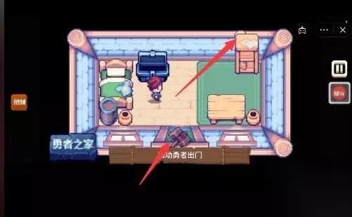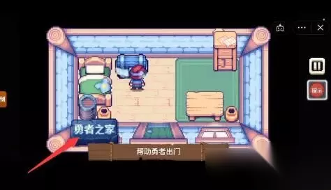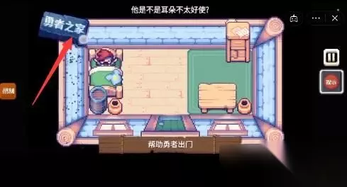 三、第三关攻略: 1、这一关的主题是帮助勇者出门。 2、我们直接点击左上方看似是标题的【勇者之家】。 3、标题掉落后会砸醒勇者,这样勇者就可以起床了。