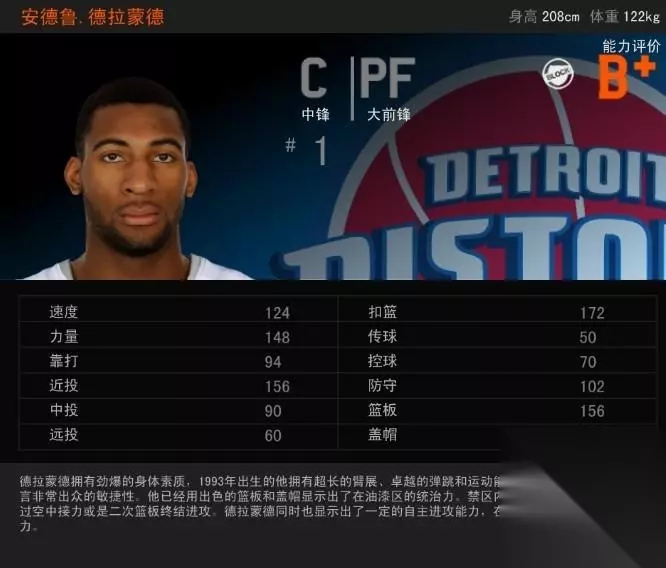 球员简介: 安德烈·德拉蒙德(Andre Drummond),1993年8月10日出生于美国纽约州弗农山(Mount Vernon, New York),美国职业篮球运动员,司职中锋,效力于NBA底特律活塞队。 安德烈·德拉蒙德于2012年通过选秀进入NBA,新秀赛季入选最佳新秀阵容第二阵容;2014年当选全明星新秀挑战赛最有价值球员,同年随美国国家队获得男篮世界杯冠军。 德拉蒙德,活塞的新星,2KOL新版本中进步最大的内线,从三流内线一下子晋升为一流内线,虽然德拉蒙德的身高不高,而且只有B+的评价,但是运动能力相当出色,盖帽能力出众,野兽级的大C,力压了曾经2KOL的“传奇中锋”(安德森在内测期间相当受欢迎,手感好,跳的高,非常实用)---“鸟人”安 德森。 篮板能力: 在大C中身高较矮,不过出色的身体素质完全可以弥补,飞板能力突出,篮板能力一流。 防守能力: 速度快,封盖能力强,无论补防外线还是对抗内线都能发挥出不错的实力。 总评: B+的评价,相当实用的内线,可以说取代了安德森,成为性价比最高的飞板达人内线,安德森的加强版。 看了上文233乐园小编带来的《NBA2kOL》现役十大中锋之安德鲁.德拉蒙德,你是否了解了相关内容信息,知道了呢!更多最新最好玩的手机游戏就来233乐园下载吧! 如转载涉及版权等问题,请作者与我司联系,我司将在第一时间删除或支付稿酬。