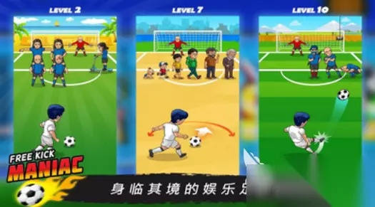 在单人模式当中涵盖20多个不同难度的关卡,还有街机模式,在此模式当中,每个玩家都会有5次失球的机会,而其次还支持实时多人对战模式,在超大的绿茵赛场当中。规定的时间之内,率先满足分数值的要求,就算轻松获胜,操作方式也很简单,手指触摸屏幕就可控制足球,正确调整射门的角度和力度。 手机扫码下载233乐园APP预约 预约订阅最新动态 优先233乐园APP下载 5、《疯狂任意球》