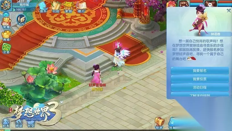 梦想好声音 等级限制:达到35级梦想好声音持续两周,等级符合条件的玩家均可进行报名、献花、宣传和点赞。活动结束后,点赞排名前10的玩家可获得专属称谓奖励。前三名还可获得梦想声音气泡和专属染色头饰,第一名还将额外获得头像券1个。
