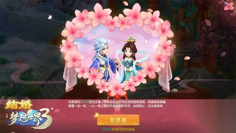 结婚系统 等级限制:达到35级在梦想大陆上,有着专为各位仙侠情侣牵红线、办婚礼的红娘。当双方人物等级达到35级时,可以和心爱的异性组成两人队伍,找到明月城的红娘共结连理。