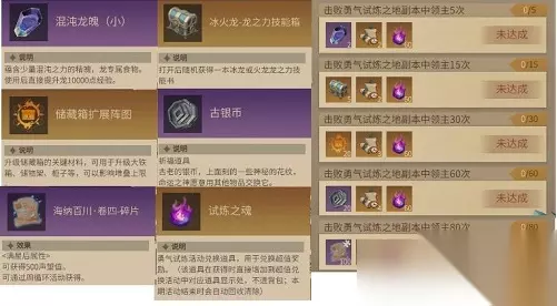 在我们进入到这片试炼之地的时候,我们会在这个副本之中面对一共五轮的攻击。而每一次攻击都需要我们面对非常强大的首领。而我们的任务是需要我们击败这个副本之中的首领的次数来到非常高额的80次,这是属于非常困难的任务了。而我们每次完成日常任务的时候,也能完成这个试炼提供的一些奖励。首先是最为简单的任务,我们要在副本里面击败随意什么敌人,只要击败的数量来到三十个,我们就可以顺利的达成这个任务的条件了。而这个任务能够完成的次数也比较多,一共可以完成15个轮次的奖赏,而且每一次完成都能够获得40个试炼之魂。我们可以通过这个得到的试炼之魂来兑换一些非常限定的装备。而除了最简单的这个击败任意敌人以外,我们还能够前往采集不同的材料来完成我们所需要完成的每日任务,我们可以通过采集五十次任意的道具以后获得这个任务二代奖励,而虽然每一次的奖励依然只有25个试炼之魂。但是同样可以完成高达15次,最后一个每日的任务比较容易,只需要我们花费金币就可以了。只要每次消费500个金币,就能够得到40个试炼之魂。而在我们完成这些任务以后可以完成比较难度较高的限定成就任务了。我们可以每天进入五次这个副本,而坚持每天来击败领主。