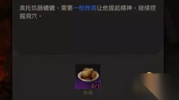 炸鸡配方:兽肉+发酵粉+盐 1、做法:肉+发酵粉+盐,按照这个配方即可做出炸鸡。品质:紫色,效果:物理攻击+3、魔法攻击+3,时效30分钟 2、炸鸡还可以在马车商队可以买到 3、注意游戏中做炸鸡是不需要用到鸡肉的,大家千万不要弄错了 4、游戏中食物可以为大家带来属性加成作用,在打不过boss时可以使用。如果有剧情任务卡关了,可以查看日志指引,一般都可以找到相关提示