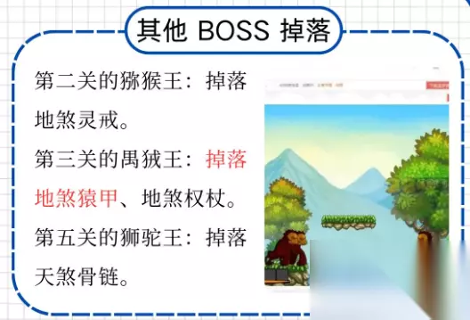 其他 BOSS 掉落 第二关的猕猴王:掉落地煞灵戒。地煞灵戒是一件不错的饰品,能为角色提供一定的属性加成。 第三关的禺狨王:掉落地煞猿甲、地煞权杖。这些装备可以提升禺狨王的实力,让玩家在战斗中更具挑战性。 第五关的狮驼王:掉落天煞骨链。天煞骨链是一件强力的饰品,具有很高的属性和特殊效果。 任务奖励 完成游戏中的一些任务,玩家可以获得装备奖励。这些任务通常具有一定的难度,需要玩家付出一定的努力才能完成。