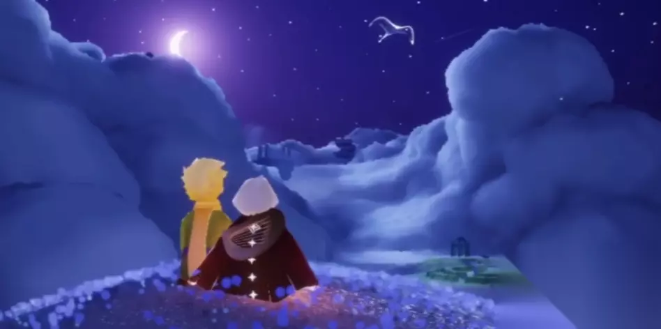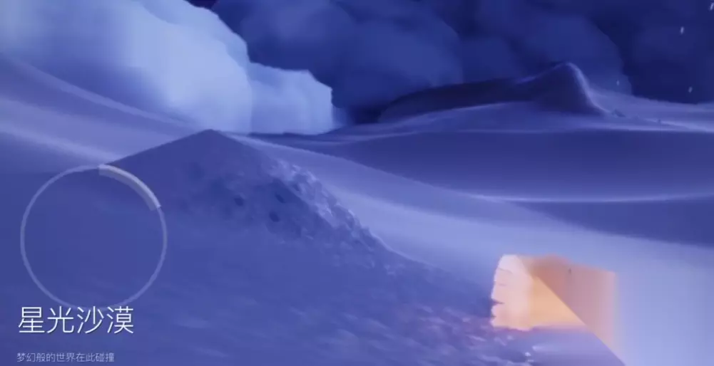 穿过这个短短的、星光点点的山洞通道,眼前就会豁然开朗,你会来到一个全新的、非常梦幻的地图——星光沙漠。这里的天空是深邃的星空,地面是泛着微光的沙地,景色很美。落地之后先别光顾着欣赏风景,我们的目标是玫瑰向导。请你向沙漠的中央区域望去,那里有一个很明显的小沙丘或者小沙堆。就在那个沙堆的顶上,你会看到一朵孤零零的、发着光的玫瑰花。这朵玫瑰花就是我们要找的沙漠玫瑰,它也是小王子季的季节向导。靠近它,就会出现一个交互图标,点击它就可以领取小王子季的季节任务了,整个寻找过程就是这么简单直接。