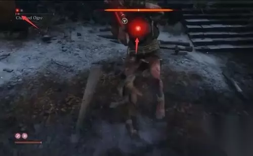 拉开距离不要太远,当赤鬼腰上出现红点时,重点来了:扔出绳索,跳到赤鬼头顶,给它重击。注意,只有当赤鬼血量很少时才会出现红点,才有重击的机会。
