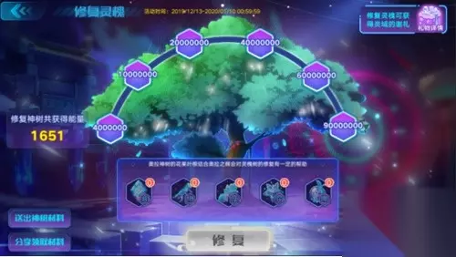 活动时间:2019年12月13日--2020年1月10日维护更新前 每日完成指定任务,可获得神树材料,帮助修复灵槐树可获得灵域的谢礼!镇魂联动时装、金色装备等惊喜奖励等你来领! 【最后一周】契合直升机
