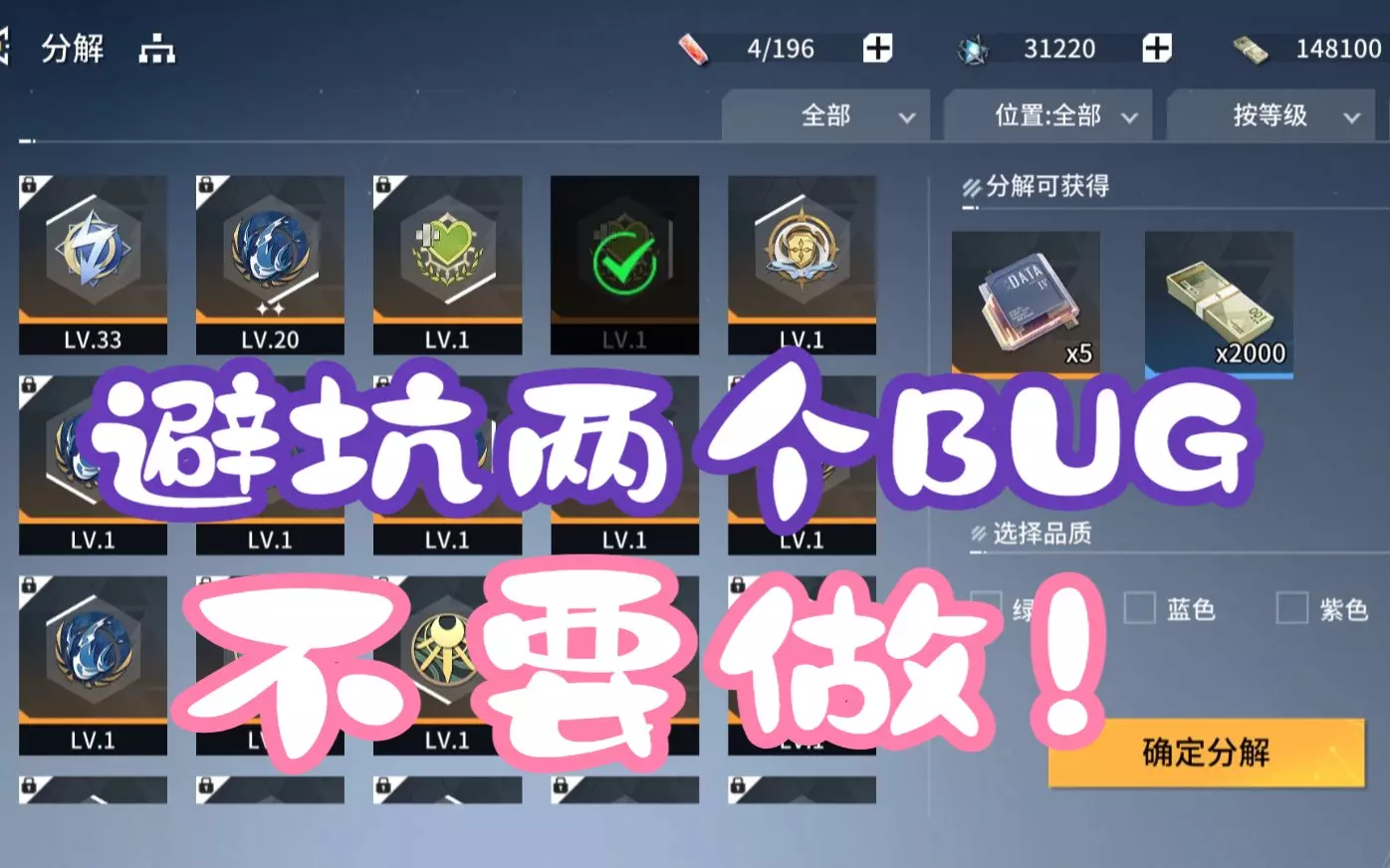 烙痕升级材料高倍和分解生命模组都有BUG,暂时不要去做,亏损极大!