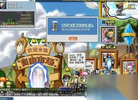 自由市场,一般疲劳时间到了打怪没经验了喜欢去逛逛虽然没什么钱,很多人会从最上面跳下来故意摔死,然后一直笑。在里面想说话只能不停的跳起来,不然别人都看不见。