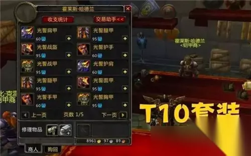 258等级的T9套装必须去打25人英雄TOC才能获得,也就是玩家们常说的“50箱子奖励”,用兑换物品直接找NPC换就可以了。 4、T10套装 T10套装对应的是ICC副本,套装同样分为3个等级,分别是251,264以及277等级。