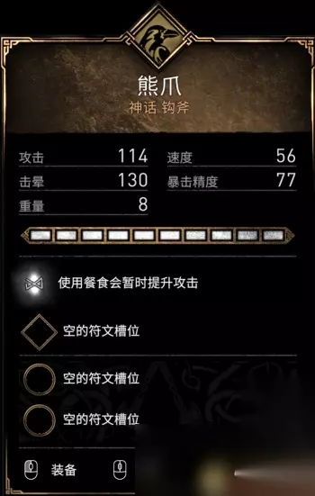 «12345678910»友情提示:支持键盘左右键"←""→"翻页 熊爪 派系:乌鸦 攻击:114 速度:56 击晕:130 暴击精度:77 重量:8 特效:使用餐食会暂时提升攻击。