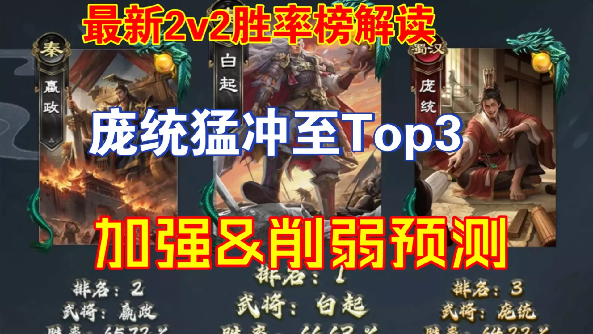 这是B站UP主“名将杀小心”关于卡牌游戏《名将杀》的内容,提到武将曹植胜率排名靠后,将迎来加强,还展示了游戏内武将胜率榜单,涉及曹植等多名武将的胜率数据。