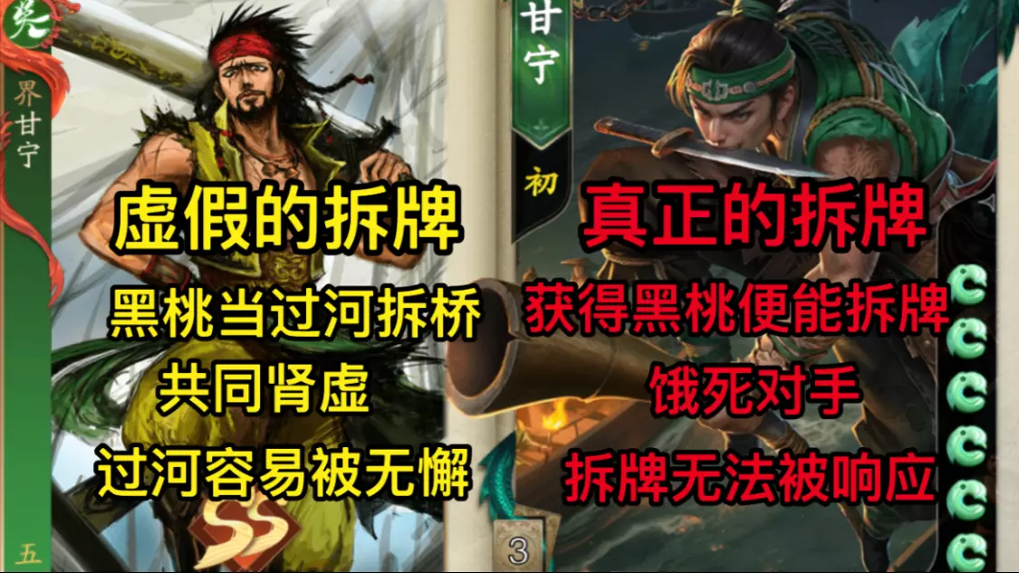 这是游戏《名将杀》武侯讲武关卡的内容展示,呈现了使用甘宁对战刘备的战斗流程,包括战斗开始、手牌操作选择等环节,该关卡需完成一回合击败敌人的目标,完成可获得碎银奖励。