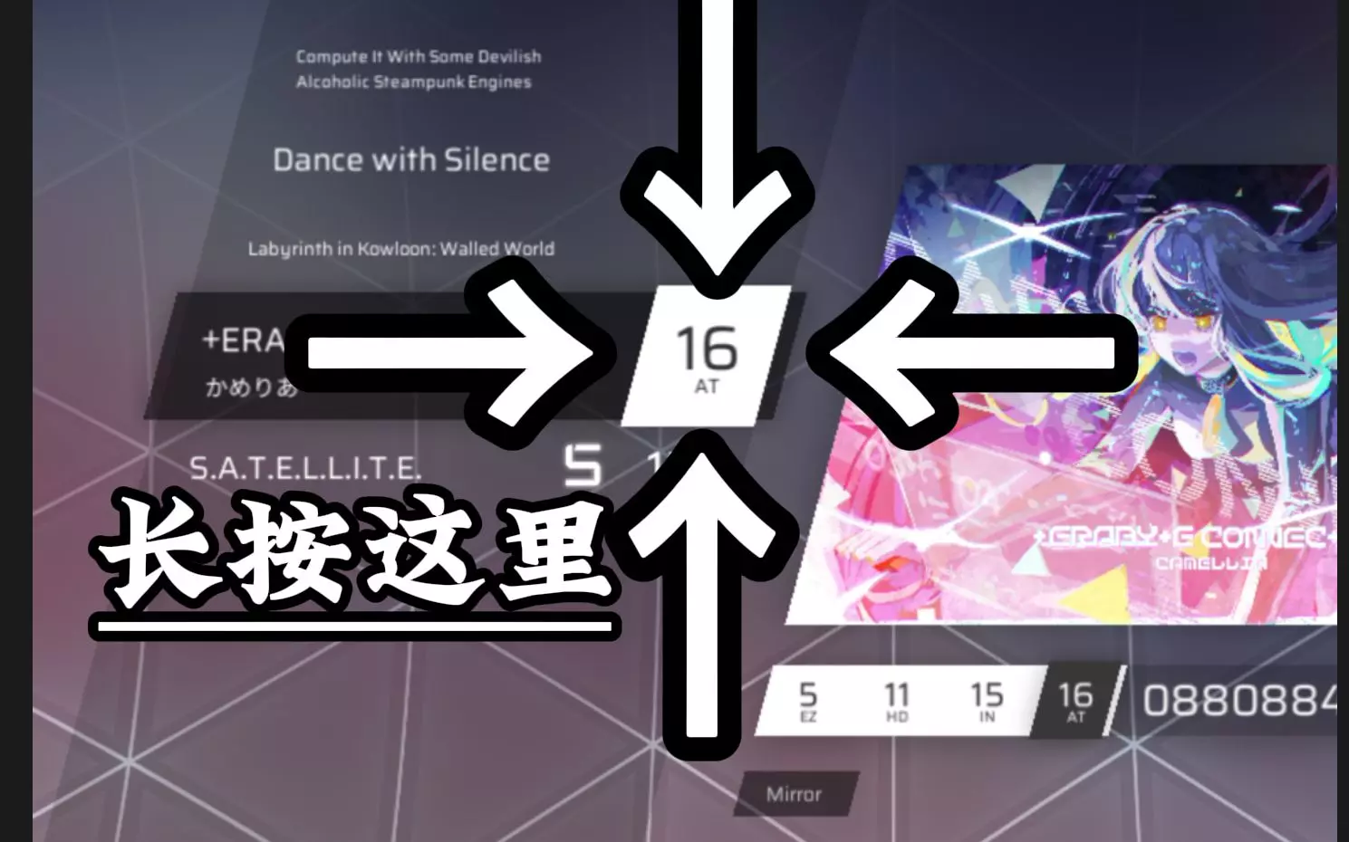 游戏名称:Phigros 曲名:Secret Illumination 难度:IN 14.8(现14.6【25-7-22】) BPM:160 谱面总评:谱面表演…