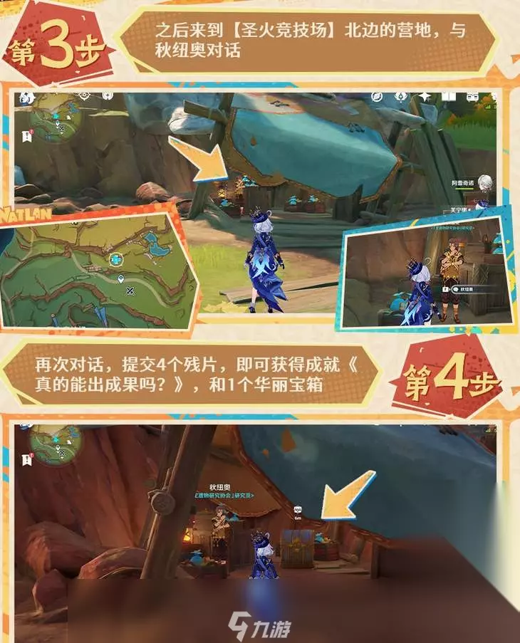 3、提交任务 到圣火竞技场北侧找秋纽奥对话并提交道具,可获得隐藏成就以及1个华丽的宝箱。