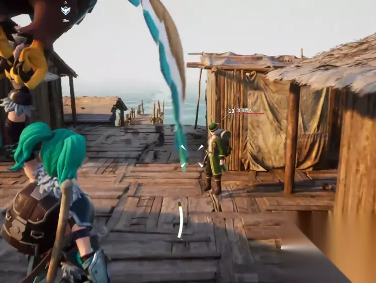 传送点在未开启状态下是冒着红光的,这个红光离老远就能看见,在看见后大家只需要跟着红光前进就可以了,在找到了红光传送点位置后就能知道渔村了,在找到渔村后进入其中会看到两个商人。