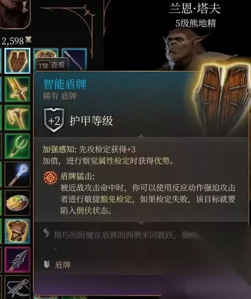 文章内容导航 智能盾牌 法师没点双持客的话可以装上提一下先攻 +3先攻是很高的而且还有察觉优势,获得方式貌似不是这个月出之塔的熊地精商人卖因为我记忆里是我卖给他的。