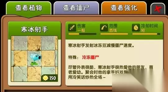 2、还可以使用寒冰射手降低它的前进速度,再使用攻击植物就能打败它。