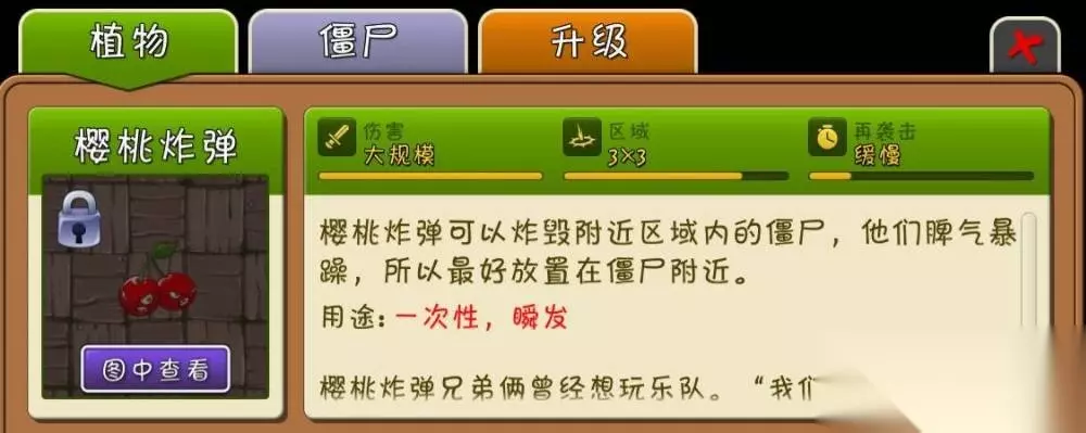 6、使用樱桃炸弹:可以与僵尸同归于尽。