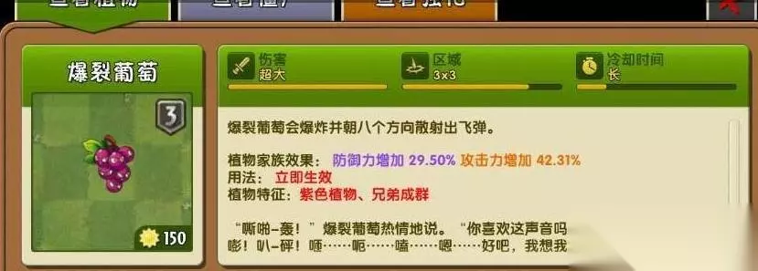 5、使用爆裂葡萄:可以与僵尸同归于尽。
