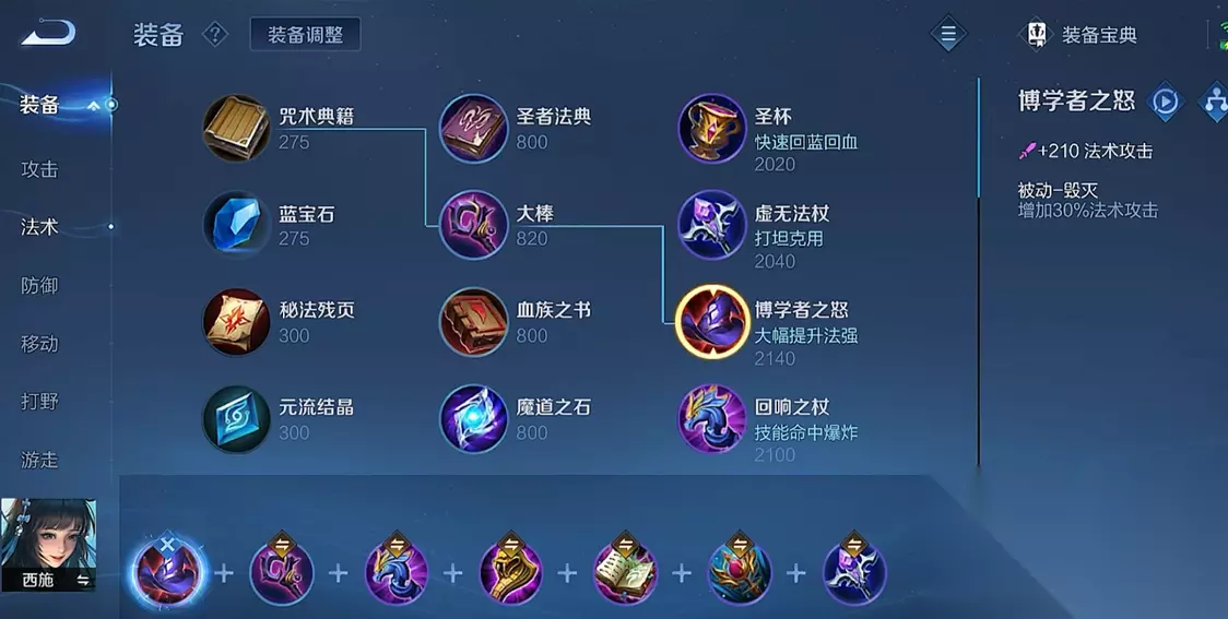 王者荣耀法师西施的出装需要围绕其技能特性进行合理搭配,核心思路是提升法术伤害、冷却缩减和生存能力。作为以控制和爆发为主的法师,西施的出装通常以回响之杖、痛苦面具、博学者之怒为核心输出装备,辅以虚无法杖增强穿透效果。由于缺乏位移技能,辉月或极寒风暴等保命装备也是关键选择。合理的出装顺序能确保西施在不同阶段发挥最大作用,前期注重清线支援,中后期强化团战输出与控制能力。