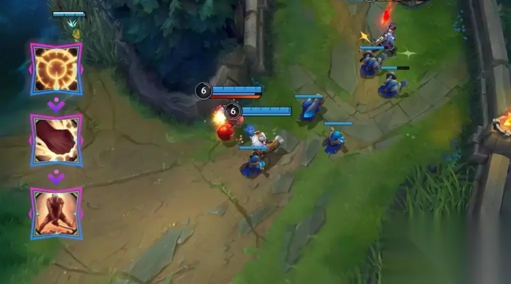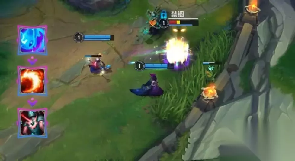 等级到达5级,就是兄弟俩登台表演的时刻了~中路搭建舞台,寻找合适的机会,永恩先利用E(3)技能起手,再利用R(4)技能击飞敌方英雄,此时亚索顺势进场,R(4)技能接住对手的同时,永恩继续补足伤害。相信峡谷内没有几个脆皮英雄能承受这样一套混合双打~