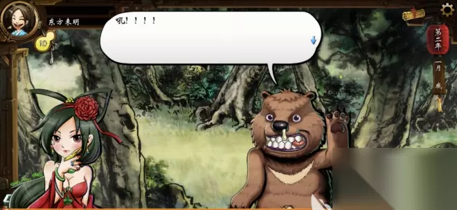 2、与棕熊战斗 为了救美人我们需要与棕熊战斗,因为我们刚加入逍遥派,只学习了不到一年的功夫,所以在战斗力上比较吃亏,棕熊的血量很高,如果我们在第一年的没有好好学习武功,打起熊来就会有些吃力。 建议在第一年多学习武学少进行闲逛。并且可以在商店购买药品以备不时之需。如果我们战胜棕熊,则可以送夜叉下山,开启以后的剧情。如果我们战败则直接回到谷内,错过其他剧情。