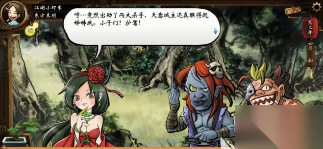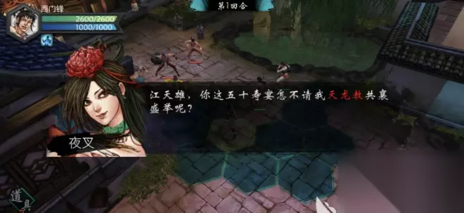 三、江府寿宴 在杀手暗算剧情后,我们就会被师傅派往参加寿宴,在寿宴上我们会遇到她,这时主角才知道她的身份。想要继续攻略她,在与她战斗中不前三回合不攻击她(包括不能反伤),一旦夜叉受到了主角的伤害就不会开启后续剧情。