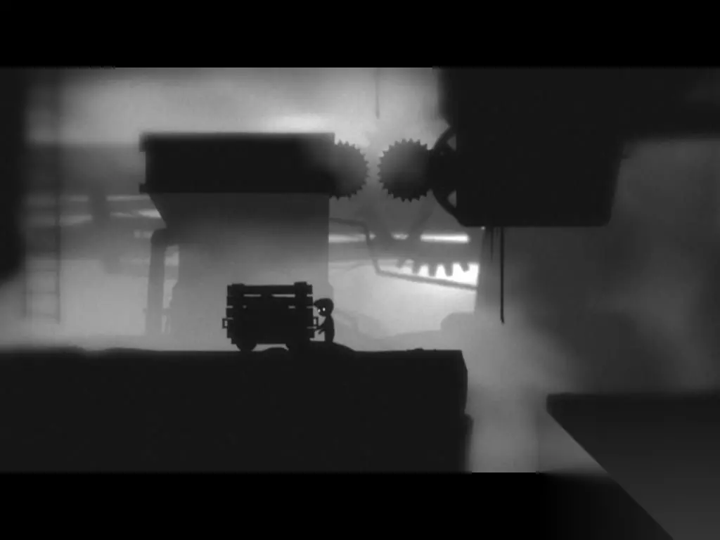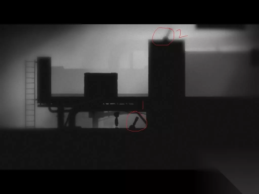上去后向右再一路向上,走到2个倒着的烟筒处,主角先推动机器到中间,把右边的机器拉到最左边直到拉不动为止,再到左边拉动开关,此时轮胎出现有段时间,跳到左边机器的右边把他推到轮胎滚出来的地方,然后往后拉(不然时间来不及),用那2个机器把轮胎运送到右边,轮胎会顺着最右边路口掉下去,顺原路下去,到轮胎处,把它拉到最高点放手立马回到有箱子的那个地方(推着轮胎跑),轮胎来回滚动导致机关打开,刹那间把箱子推下去(箱子推下去后人立即向后退,小心碾死),现在把箱子拉到右边,跳到有摇杆机关的平台上,扳动机关,下来把箱子推到齿轮上,再跳到平台上,把平台上的箱子再推上齿轮,人也上齿轮,顺着齿轮,来到陆地,然后2个箱子一个房机关处,一个放最右角