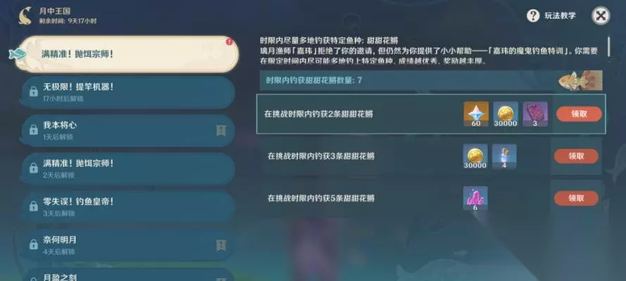 2.熟悉不同鱼种特点:不同种类的鱼具有各自的特点和钓饵偏好,玩家需要学习并记忆这些信息,以便在游戏中准确选择钓饵。 3.钓线选择与运用:根据鱼的大小和水域条件,选择合适的钓线材质和长度,保证能够承受鱼的拉力并不易断裂。 4.掌握鱼咬钩的时机:通过观察浮标的动作和声音,玩家可以判断出鱼咬钩的时机,及时做出收线动作,增加成功捕获的机会。 5.合理运用钓竿技巧:掌握钓竿的摇杆操控和节奏感,让钓饵呈现出更加自然的游动姿态,吸引鱼咬钩。 6.深度调节与鱼咬力度判断:根据观察水面和浮标的情况,合理调节钓竿的下沉深度,并通过感觉拉力的大小来判断鱼的咬力度。 7.学会使用道具增加成功率:在游戏中可以购买和使用各种道具,如增加钓饵诱惑力、减小鱼咬力度等,玩家需要根据实际情况灵活运用。 8.转动手机利用陀螺仪:游戏支持手机陀螺仪功能,在钓鱼过程中可以通过转动手机来模拟实际钓鱼时的摇杆操作,提高游戏体验。 9.注意保持耐心与专注:钓鱼是一项需要耐心和专注力的活动,玩家要保持镇定心态,耐心等待合适的时机,避免因急躁而错过机会。 10.学习其他玩家经验:可以通过游戏论坛或社交平台了解其他玩家的经验和技巧,借鉴他们的成功之道,并不断完善自己的钓技。 11.多进行钓鱼任务挑战:游戏提供了丰富的任务挑战,玩家可以通过完成这些任务来获得额外奖励和经验,快速提升自己的钓技水平。 12.针对不同季节选择钓点:不同季节水域中的鱼类活动规律有所不同,玩家需要根据季节选择不同的钓点,以提高抓鱼的成功率。 13.不同天气条件下的钓鱼技巧:天气变化会对钓鱼活动产生影响,例如阴雨天气可以选择较深处进行钓鱼,阳光明媚时则可以选择浅水区域。 14.视频教学学习:在视频分享网站上有许多钓鱼游戏的教学视频,玩家可以通过观看这些视频学习一些高级的钓技和技巧。 15.坚持练习与不断尝试:钓鱼技巧的提高需要坚持不懈的练习和不断的尝试,玩家要不断经验,找到适合自己的钓鱼方式。 《钓鱼王国》是一款需要技巧和耐心的游戏,通过掌握上述技巧和方法,玩家可以提高自己的钓技水平,更好地享受游戏乐趣。在游戏中不断学习、多进行实践,并且保持积极的态度,相信你也能成为一位优秀的“钓鱼王国”玩家!