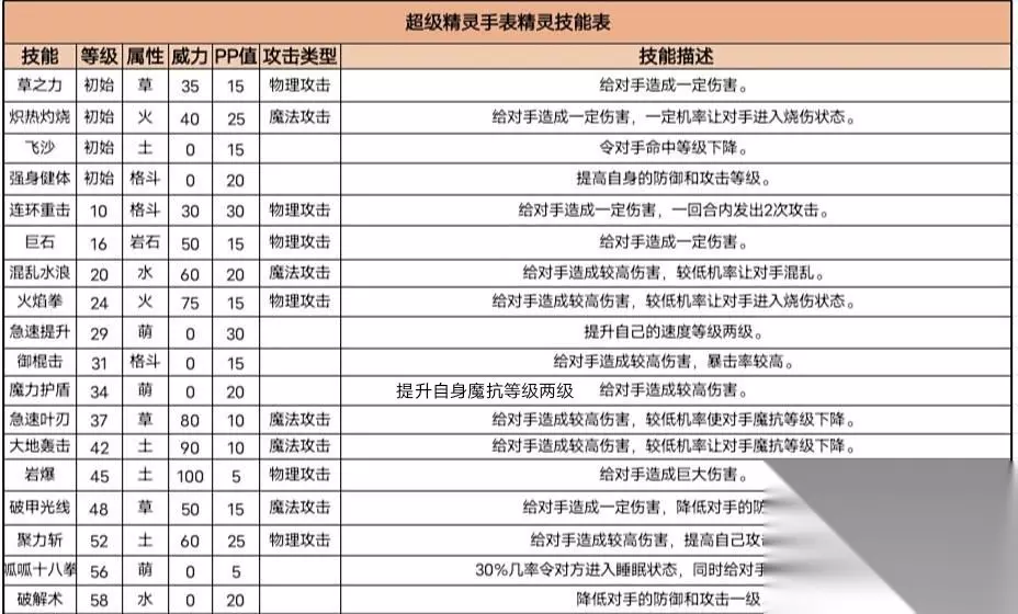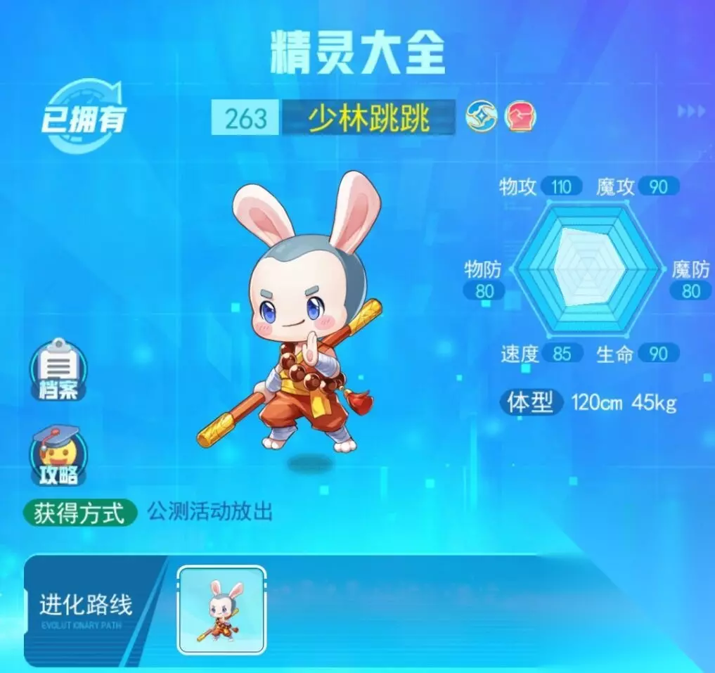 超级精灵手表少林跳跳技能 获取方式:公测活动放出 系别:水格斗 进化等级:最高形态 少林跳跳种族值 物攻 物防 法攻 法防 生命 速度 总和 110 80 90 80 90 85 535 少林跳跳技能表: