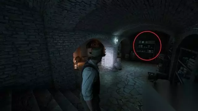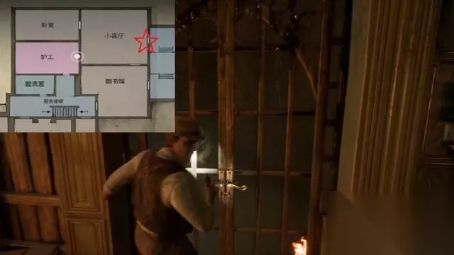返回厨房岔路并进入前方的锅炉间,拿到线索“蓄意破坏”。 随后打开下图门前往一楼。