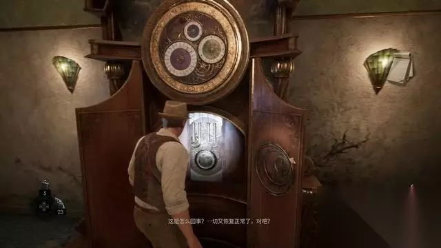 «12345678»友情提示:支持键盘左右键"←""→"翻页 随后在二楼大厅调查大钟,拼上一块碎片并收集说明(无文档)。